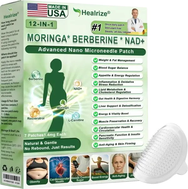 H๐a๐ฅr๐ขz๐ยฎ 1๐-๐N-1 M๐จr๐ขn๐ a * B๐r๐e๐ซi๐งe * N๐D+ ๐d๐ฏa๐งc๐d N๐n๐จ ๐i๐r๐จn๐e๐l๐ ๐a๐ญc๐ก ย was developed through more than 20 years of research by a multidisciplinary team of over 30 experts. Each patch incorporates an ultra-fine microneedle architecture measuring approximately one-seventh the thickness of a human hair, designed to ensure a smooth and virtually painless application. The formulation contains highly concentrated natural bioactive compounds, up to 20-fold higher than conventional market levels, including Moringa and Berberine, which act synergistically to support healthy glycemic responses, appetite regulation, and lipid metabolism, thereby promoting gradual and sustainable weight management. Enriched with NAD+, the patch further supports skin firmness and structural resilience during body-weight fluctuations, helping maintain a lean appearance without compromising comfort or aesthetics. Additional high-efficacy components contribute to the support of immune function, digestive health, gut balance, womenโs health, daily energy levels, and fatigue reduction, collectively promoting a more youthful and resilient physiological state from within. Manufactured in GMP-certified facilities that comply with both United States and EU quality standards, this needle-free, science-driven solution provides a safe and comprehensive approach to effective weight management and long-term metabolic health, designed to work in harmony with the body rather than against it.
