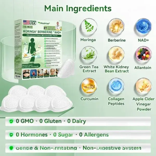 This 100% natural, scientifically formulated patch is designed so that all active ingredients work synergistically without interference. Because it bypasses the digestive system, it can be safely used alongside daily meals and routine products. The patch is vegan-friendly, offers high transdermal absorption, and contains no hormones, sugars, or allergenic ingredients. It is non-GMO, gluten-free, soy-free, and free from artificial colors, fragrances, and preservatives.